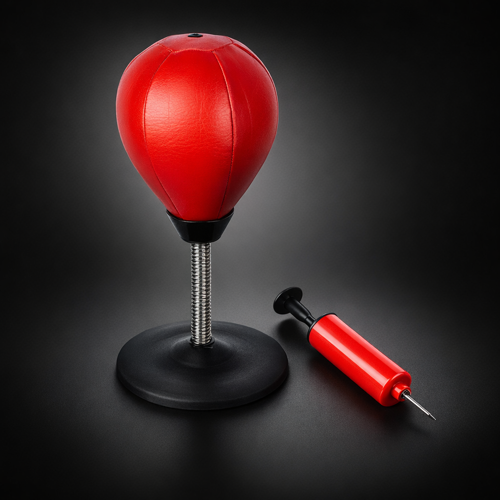 Solidna gruszka do wykorzystania na stole lub biurze. Gumowa przyssawka niezawodnie przylega do każdej płaskiej powierzchni. Więc piłka bokserska jest gotowa do ciężkiego uderzenia. Elastyczna stalowa sprężyna umożliwia szybki powrót gruszki do pierwotnego położenia. Zestaw bokserski jest wyposażony w pompę z zaworem igłowym, dzięki czemu można określić stopień twardości samej kuli.